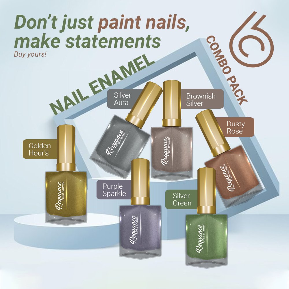 REQUANCE Nail Enamel Combo Pack of 6 – Long-Lasting, Quick-Dry Shades